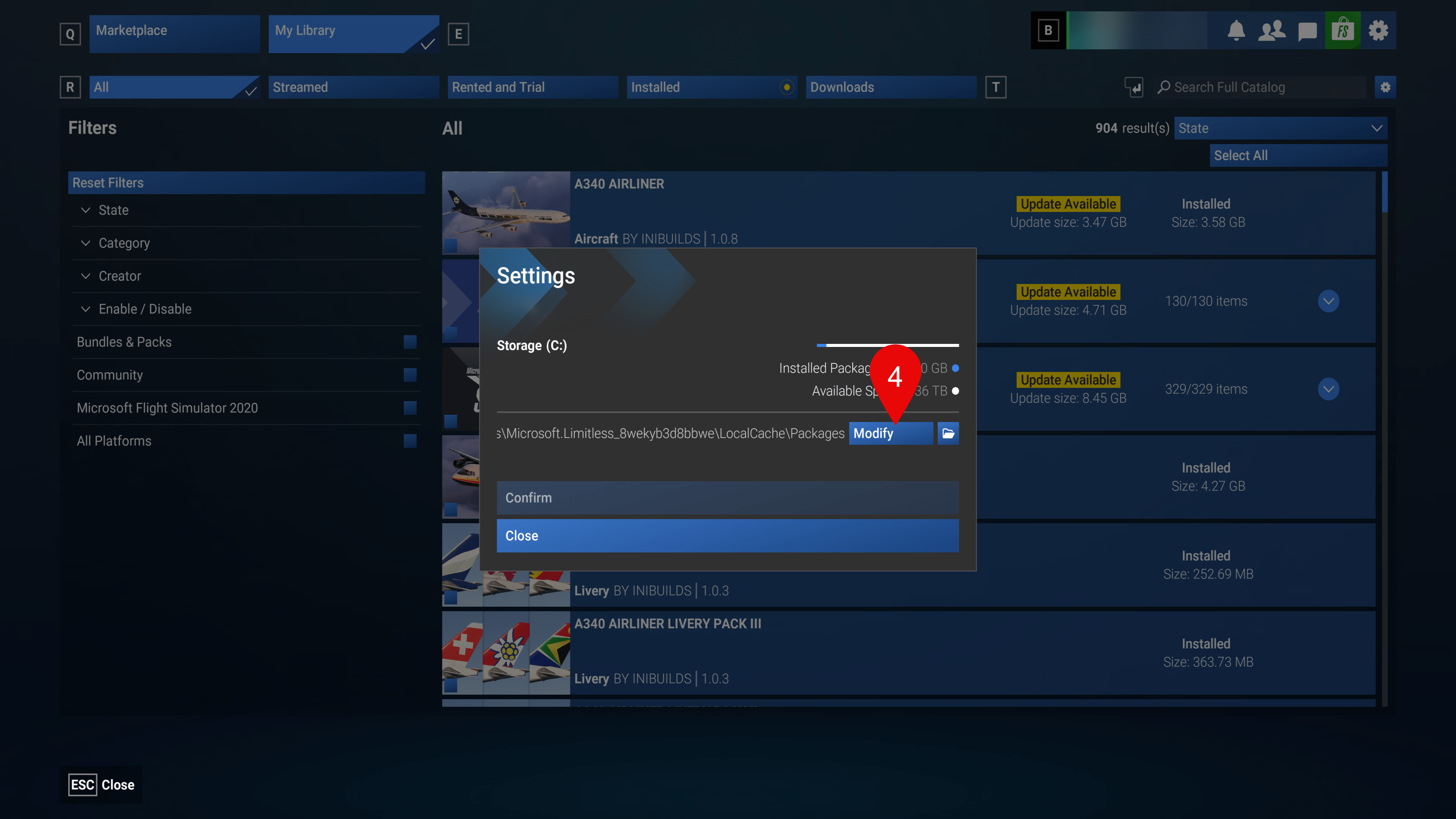 C:\Users\YourUsername\AppData\Local\Packages\Microsoft.FlightSimulator_8wekyb3d8bbwe\LocalCache\Packages\Community